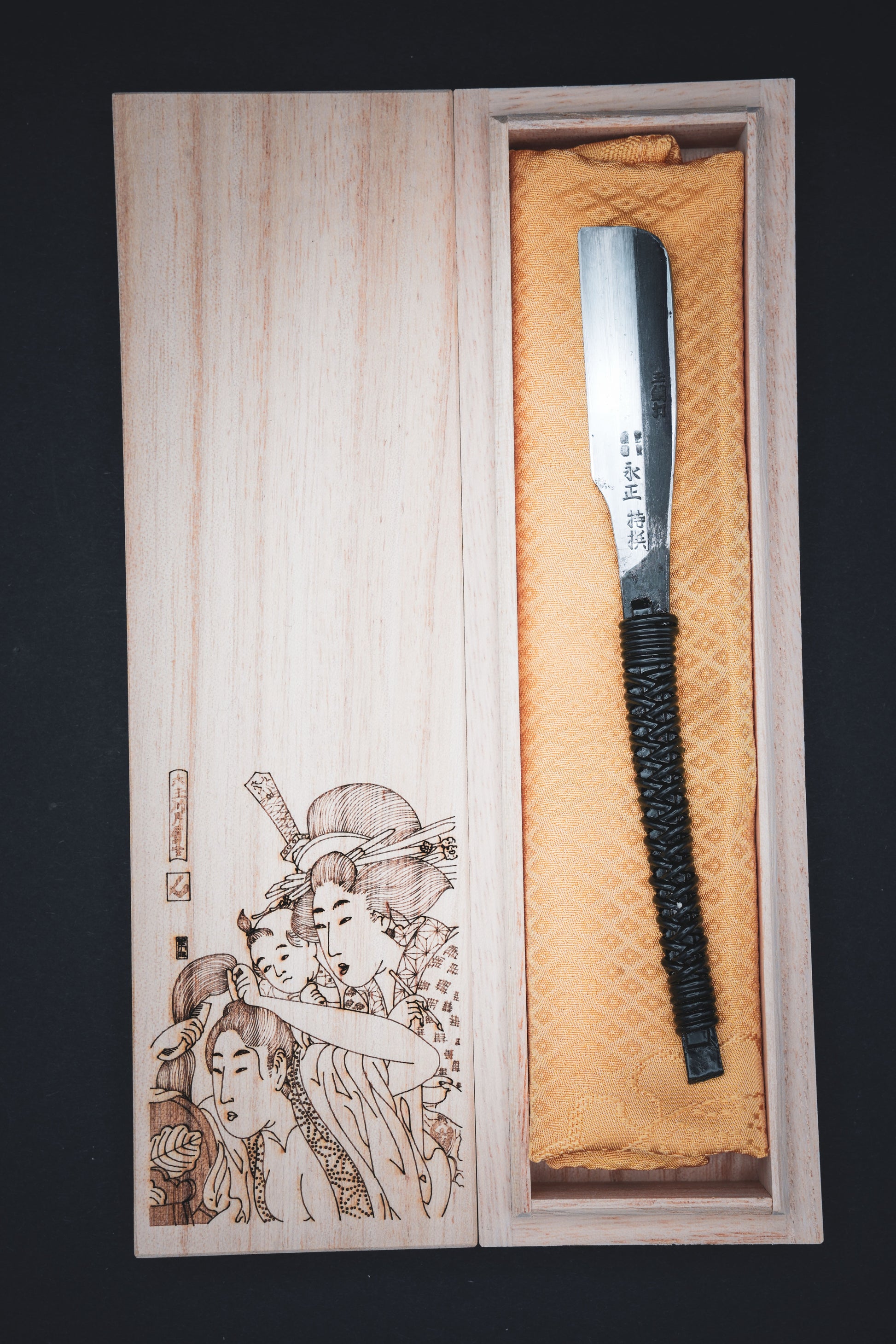Inklusive einer handgefertigten japanischen Paulownia-Schachtel mit Gravur.
