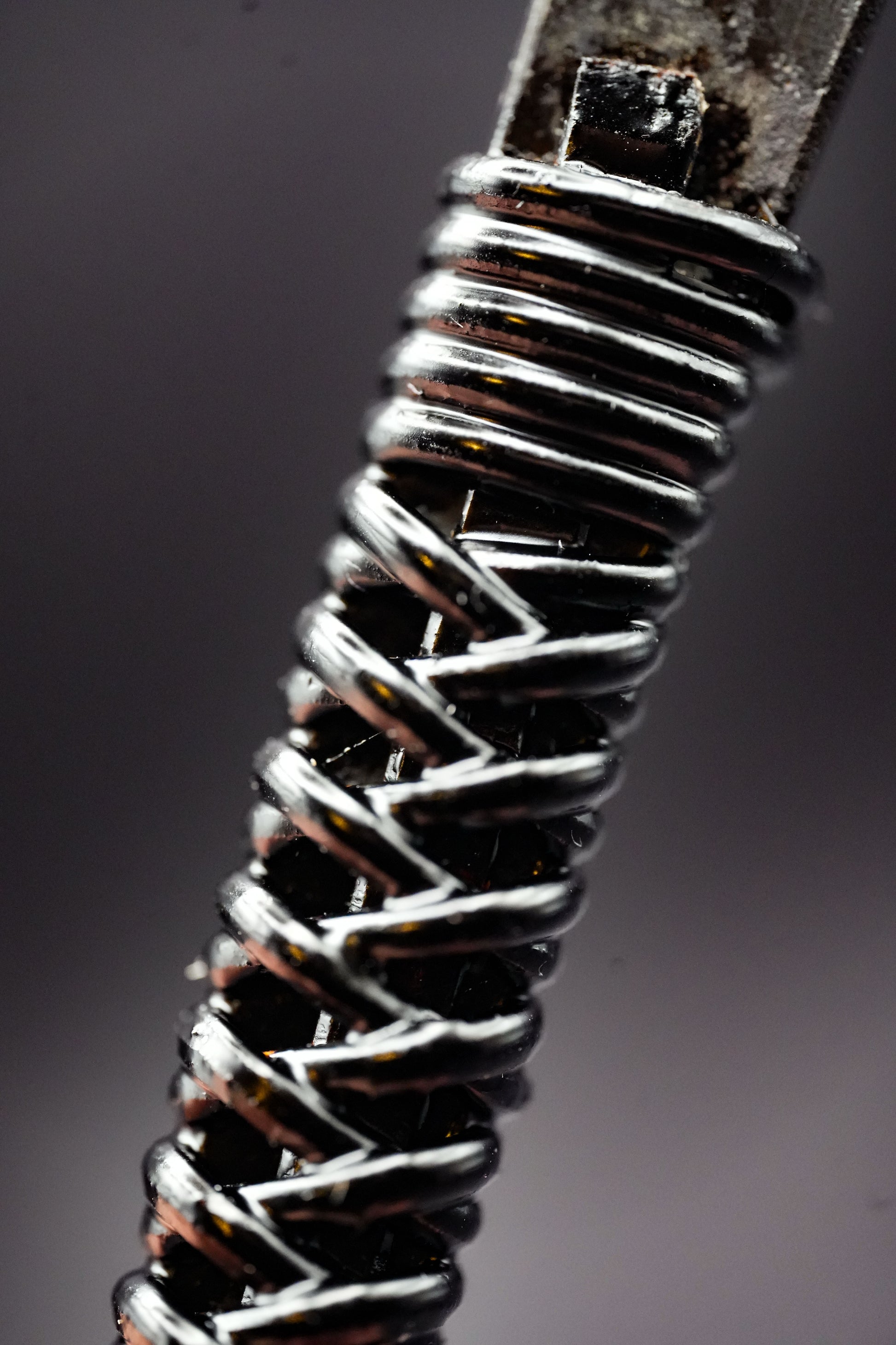Wir haben den alten Griff sowie alte Flecken und Rost entfernt. Anschließend haben wir ihn gebläut, um weiteres Rosten zu verhindern. Anschließend haben wir eine traditionelle Rattan-Griffumwicklung mit natürlichem japanischem Urushi-Lack angebracht.