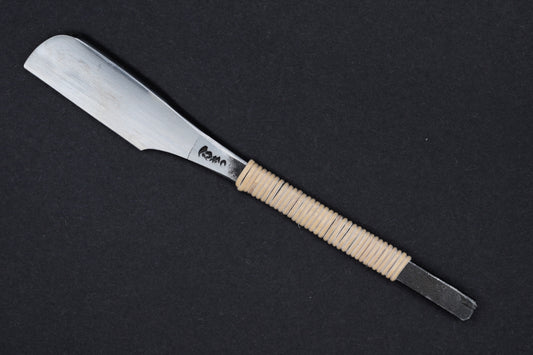 Henkotsu Kamisori ・ へんこつ ・ Rasoir droit japonais vintage restauré Kamisori ・ Emballage avec manche en rotin et boîte en bois Hinoki faite à la main (copie)