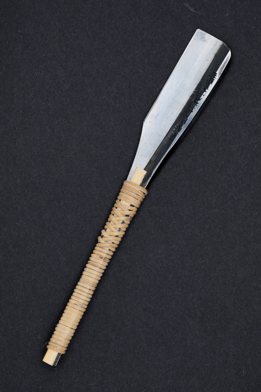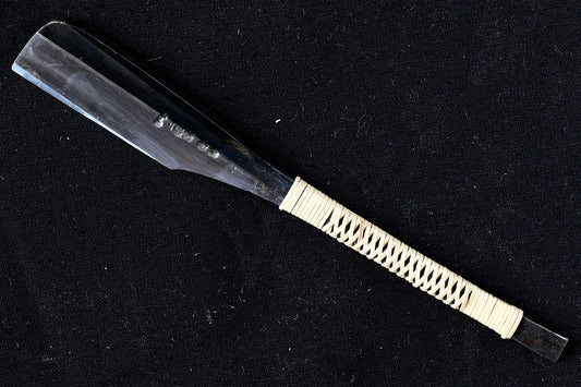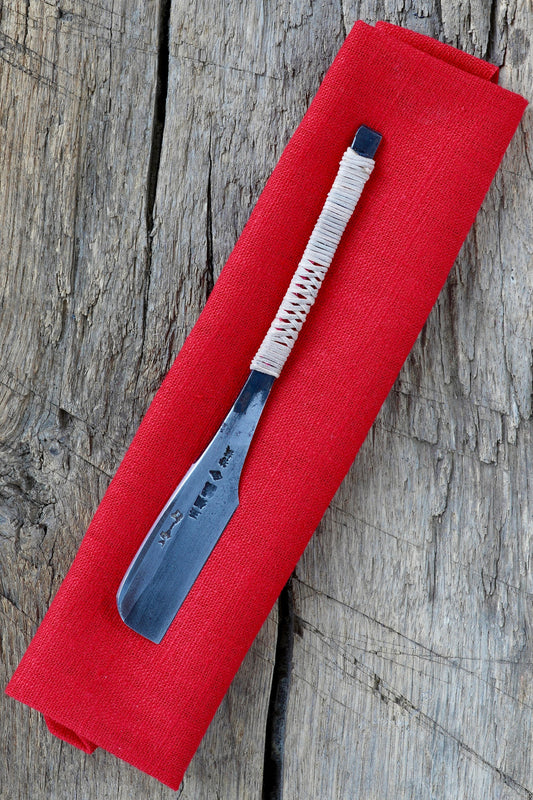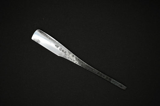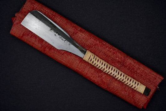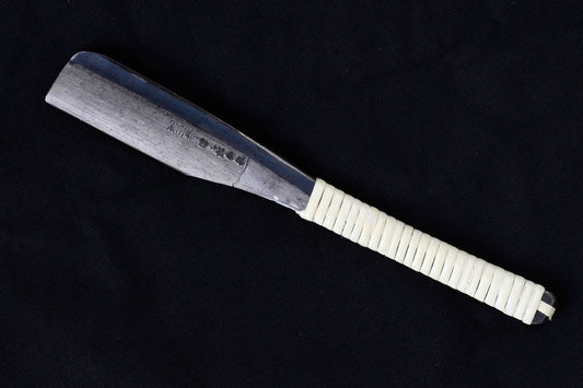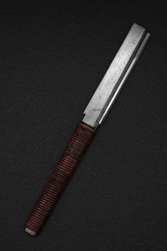 Kamisoris are made of two layers of metal. Usually a soft Iron or soft steel which does not harden when quenched is the layer which forms the handle and the Omote side of the Kamisoris. Out of necessity a small layer of High Carbon steel is hammer welded on the soft layer. This High Carbon steel hardens when heated and quenched and forms the cutting part of the Kamisori. The High Carbon Steel can be from many Sources and sometimes it is made of very rare Tamahagane (玉鋼)