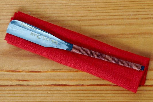 Hanamasa 花正 Real Tamahagane Kamisori, rasoir droit japonais vintage restauré, emballage de poignée en cuir/lin, boîte Sugi en bois faite à la main