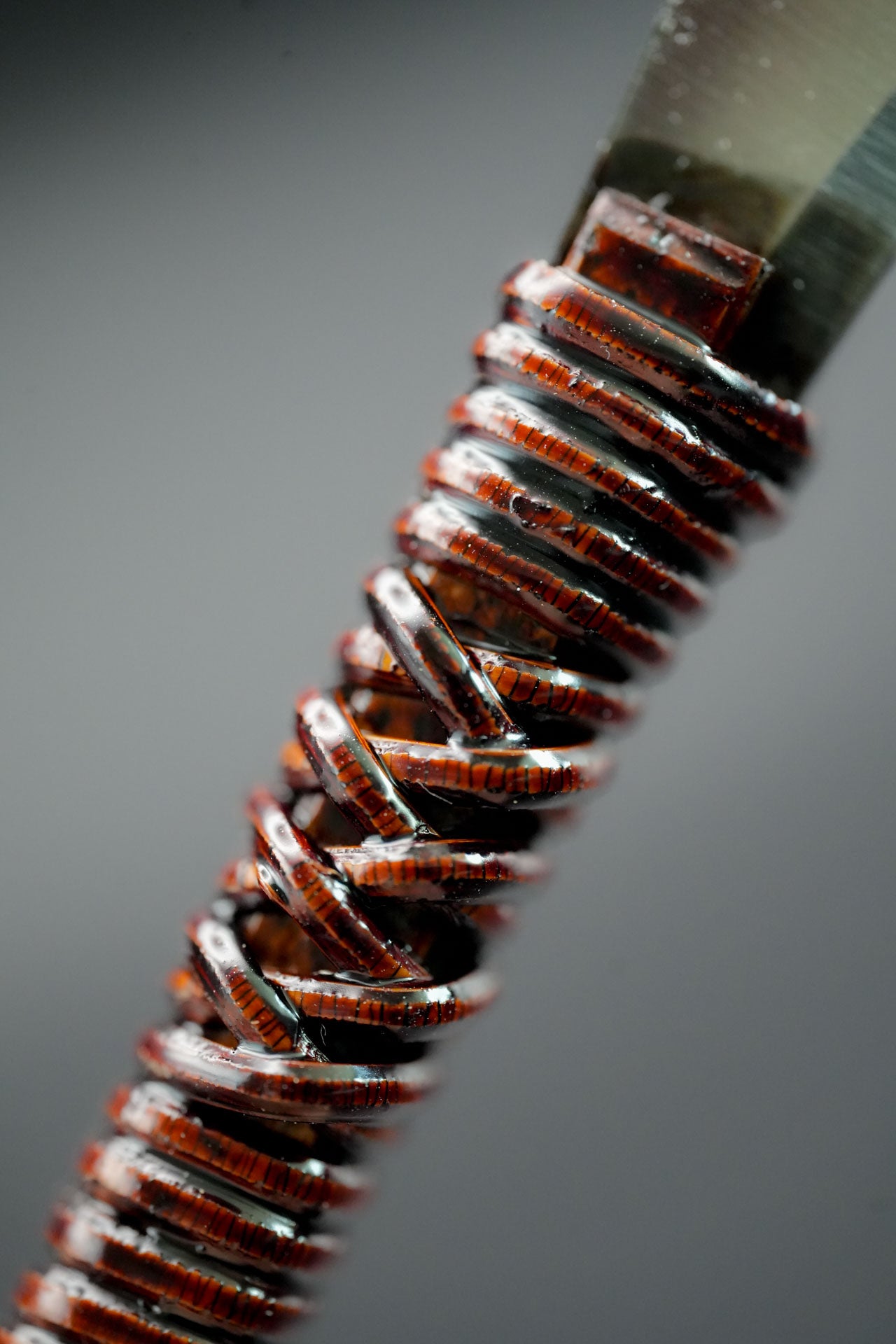 Poignée gainée de rotin japonais et de laque Urushi.