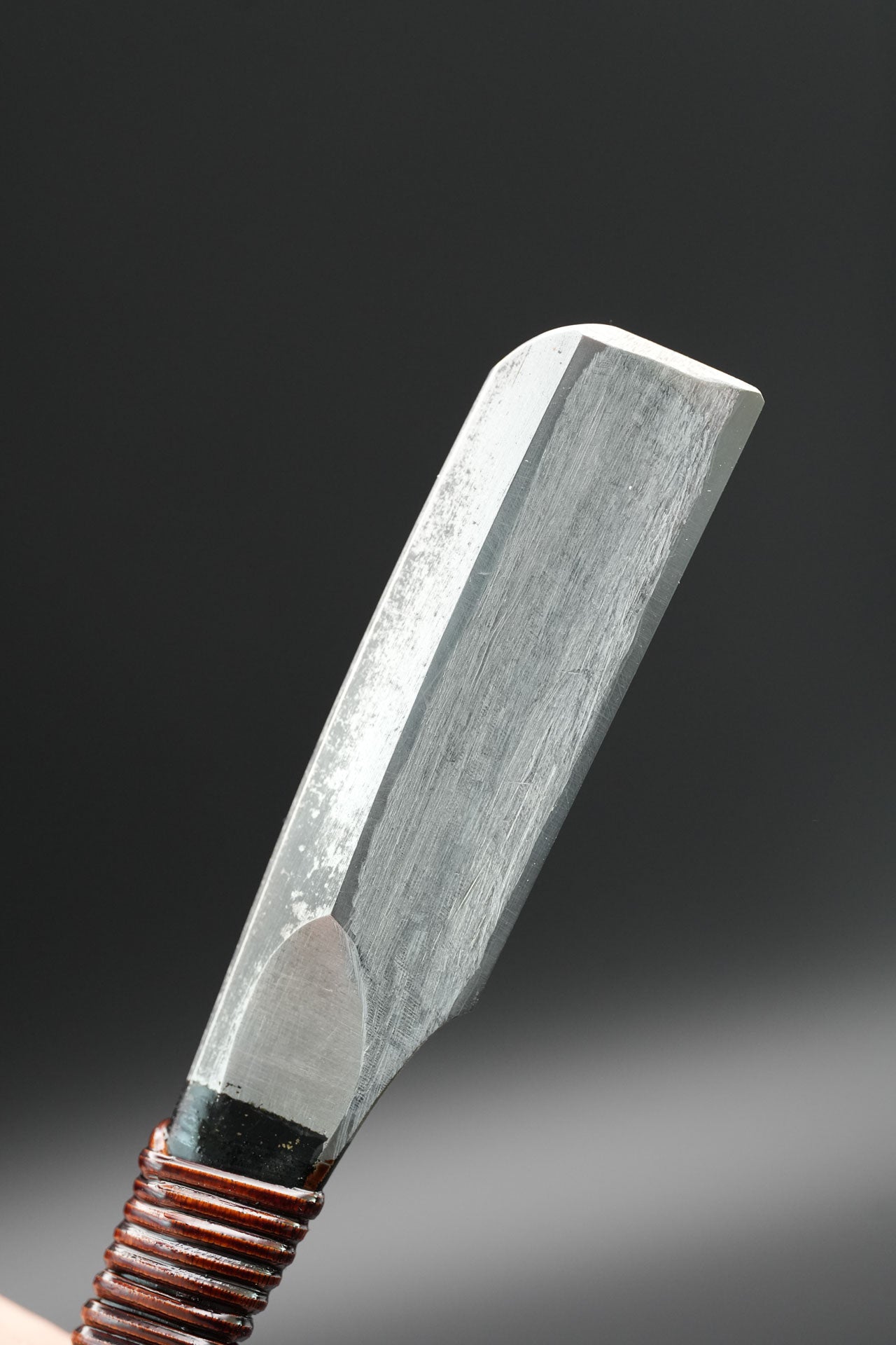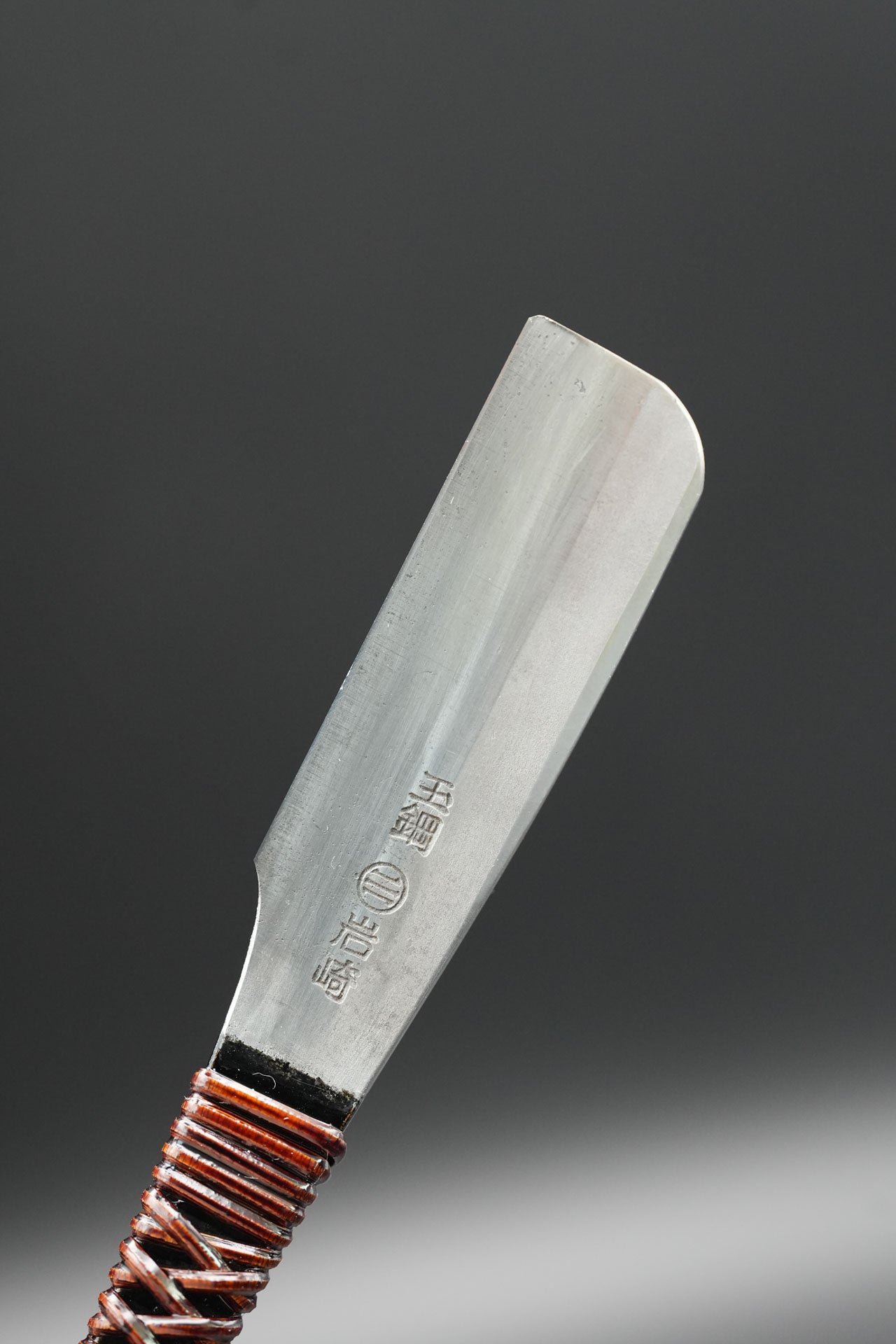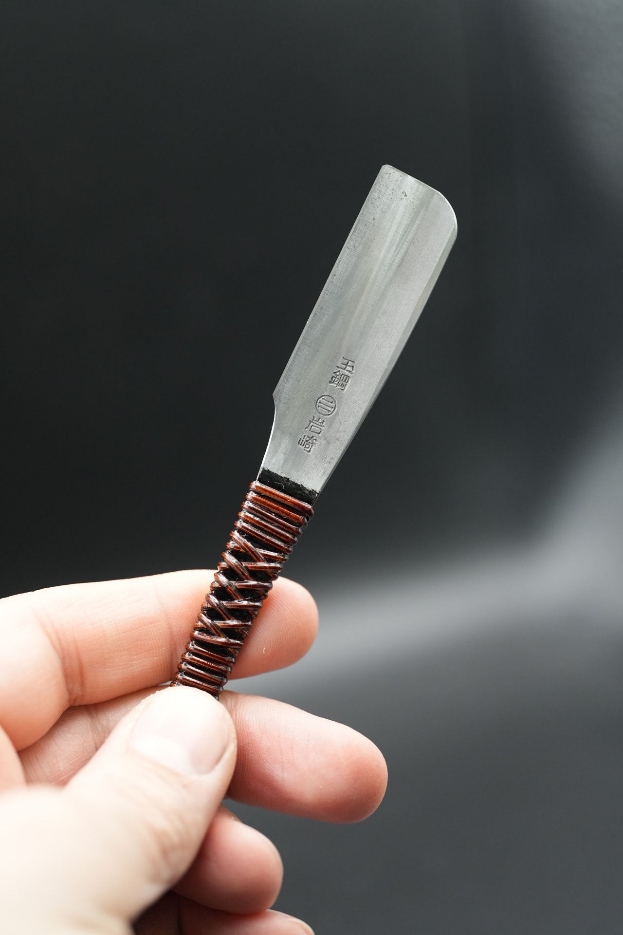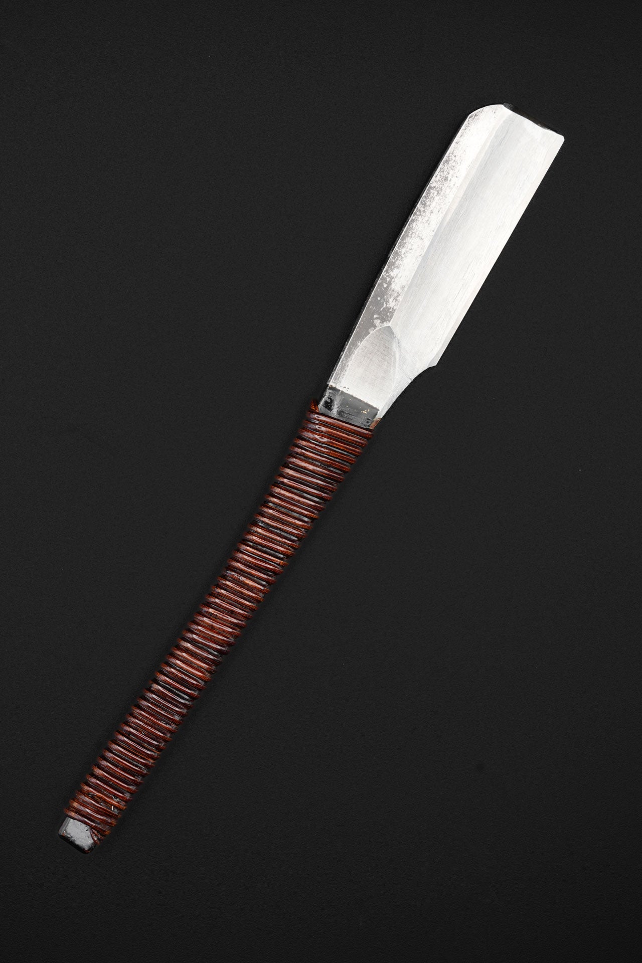 Ce Kamisori a été forgé à la main à partir de 2 couches : la partie tranchante est en acier Tamahagane (le même acier qui est et était utilisé pour les sabres de samouraï japonais), la couche de support est en fer.