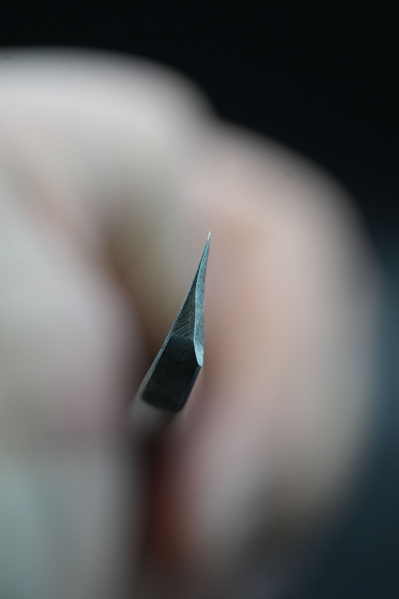 Les aciers à haute teneur en carbone, comme la couche de coupe de ce Kamisori, ont une dureté bien supérieure et conserveront leur qualité de rasage lisse beaucoup plus longtemps avant de devoir être affûtés à nouveau.