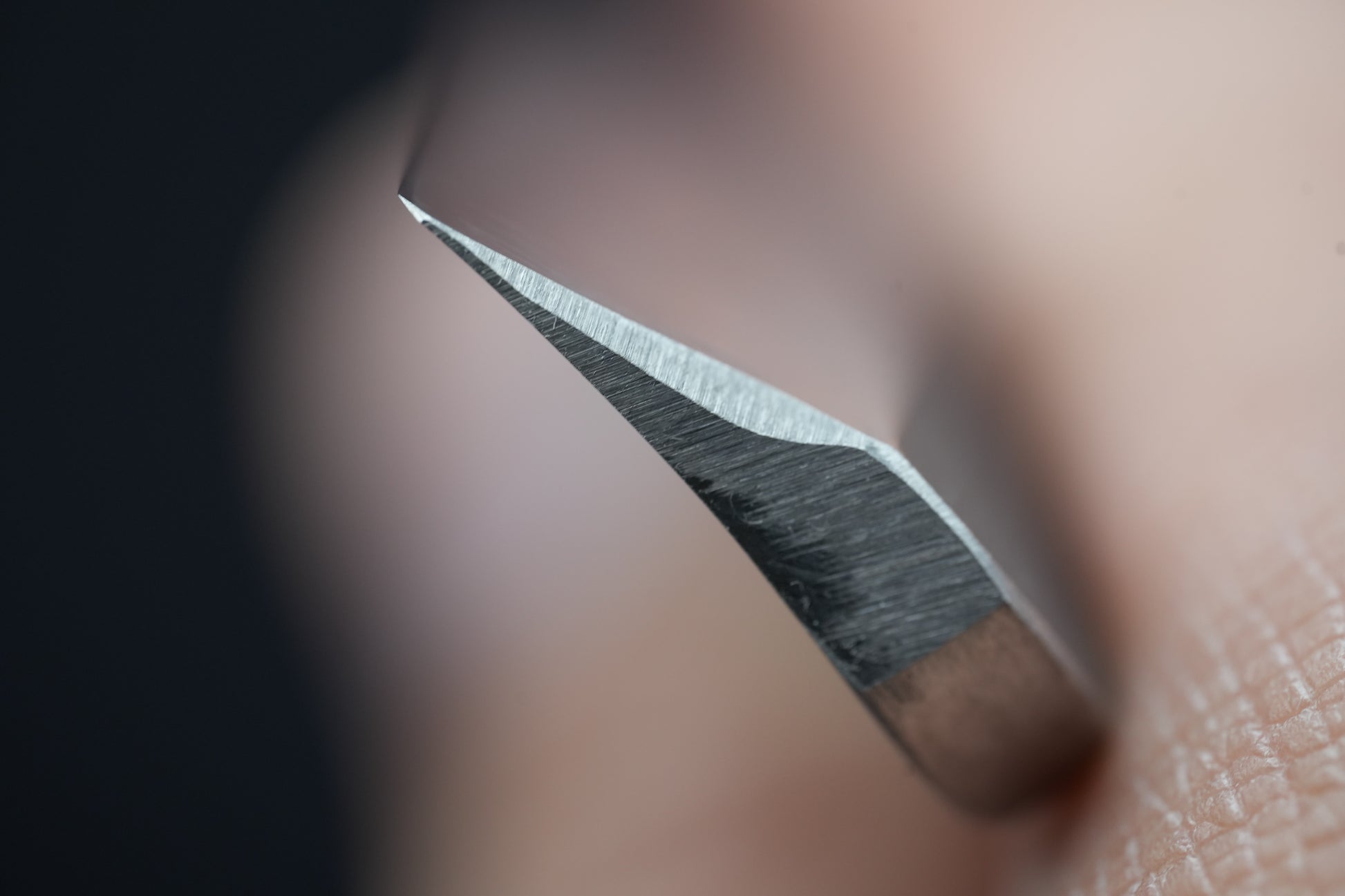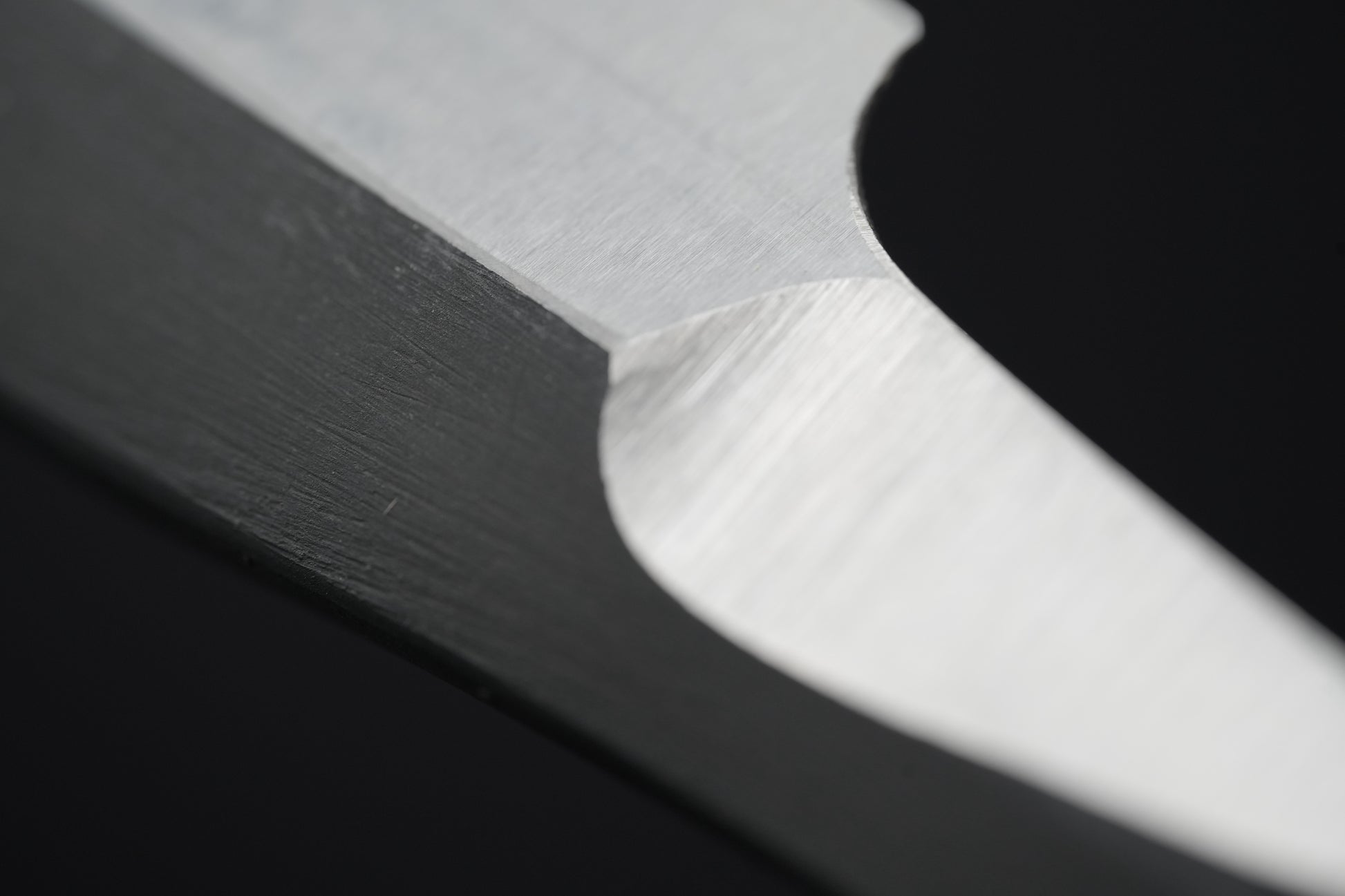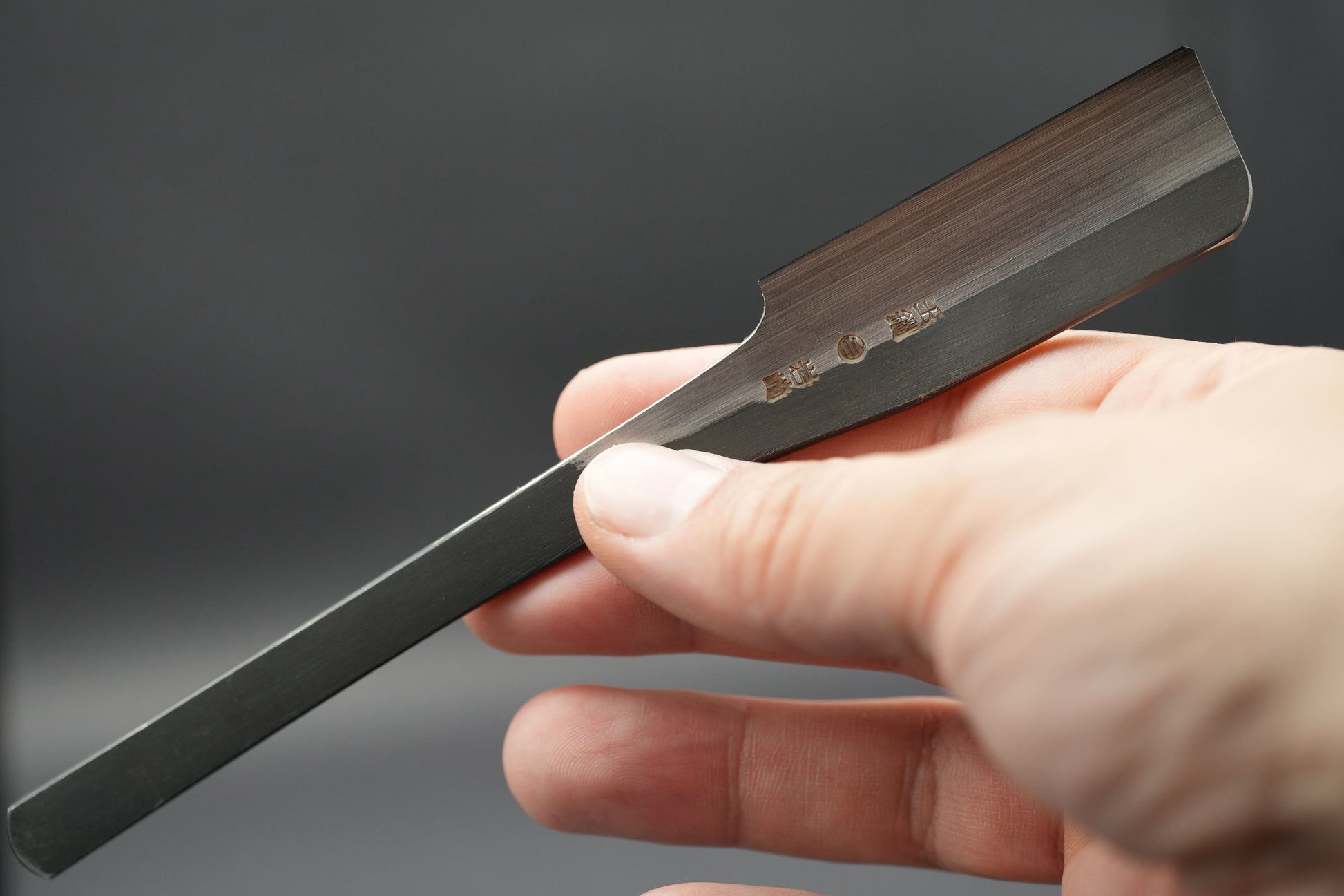 Les aciers à haute teneur en carbone, comme la couche coupante de ce Kamisori, ont une dureté bien plus élevée et conserveront leur qualité de rasage lisse bien plus longtemps avant de devoir les affûter à nouveau.