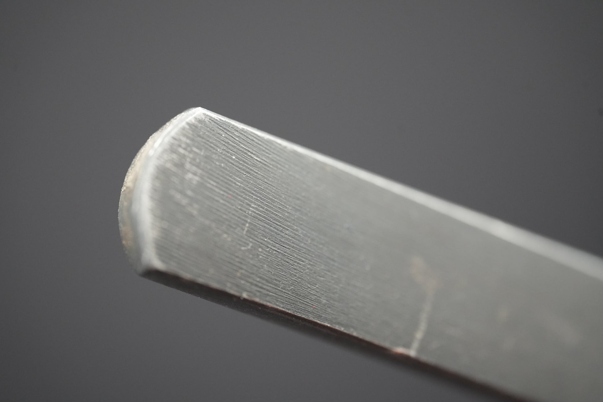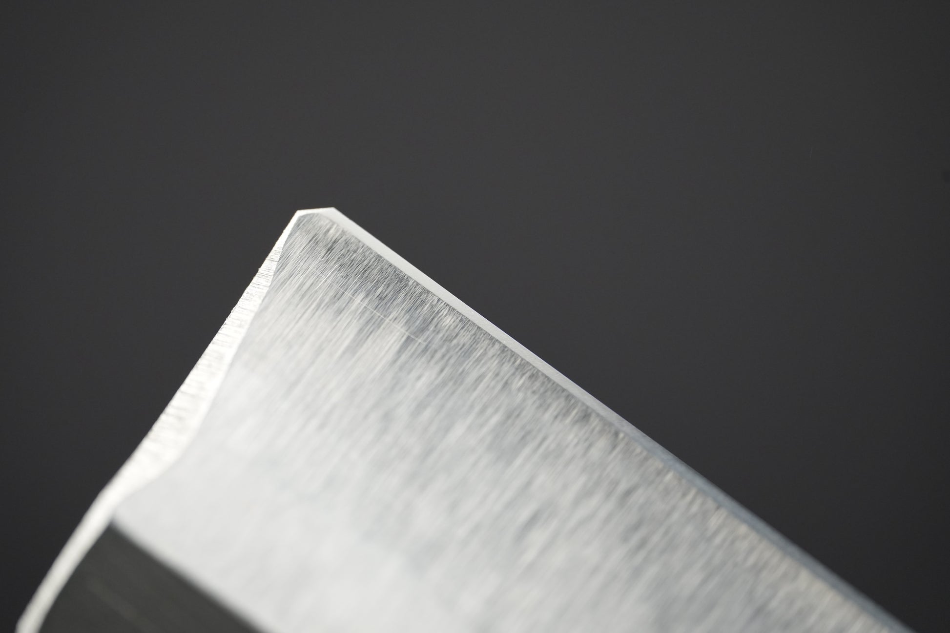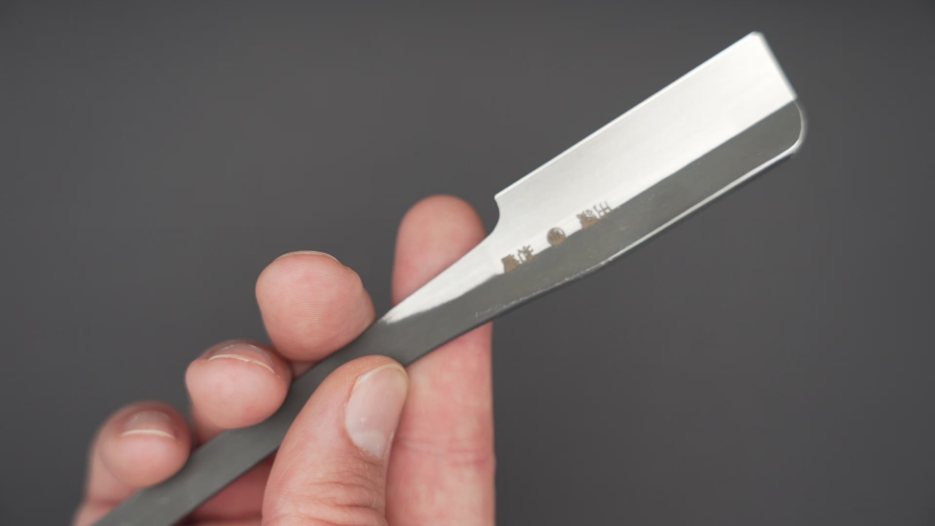 High carbon steels, like the cutting layer of this Kamisori, have a much higher hardness and will keep their smooth shaving quality for much longer before having to sharpen them again.