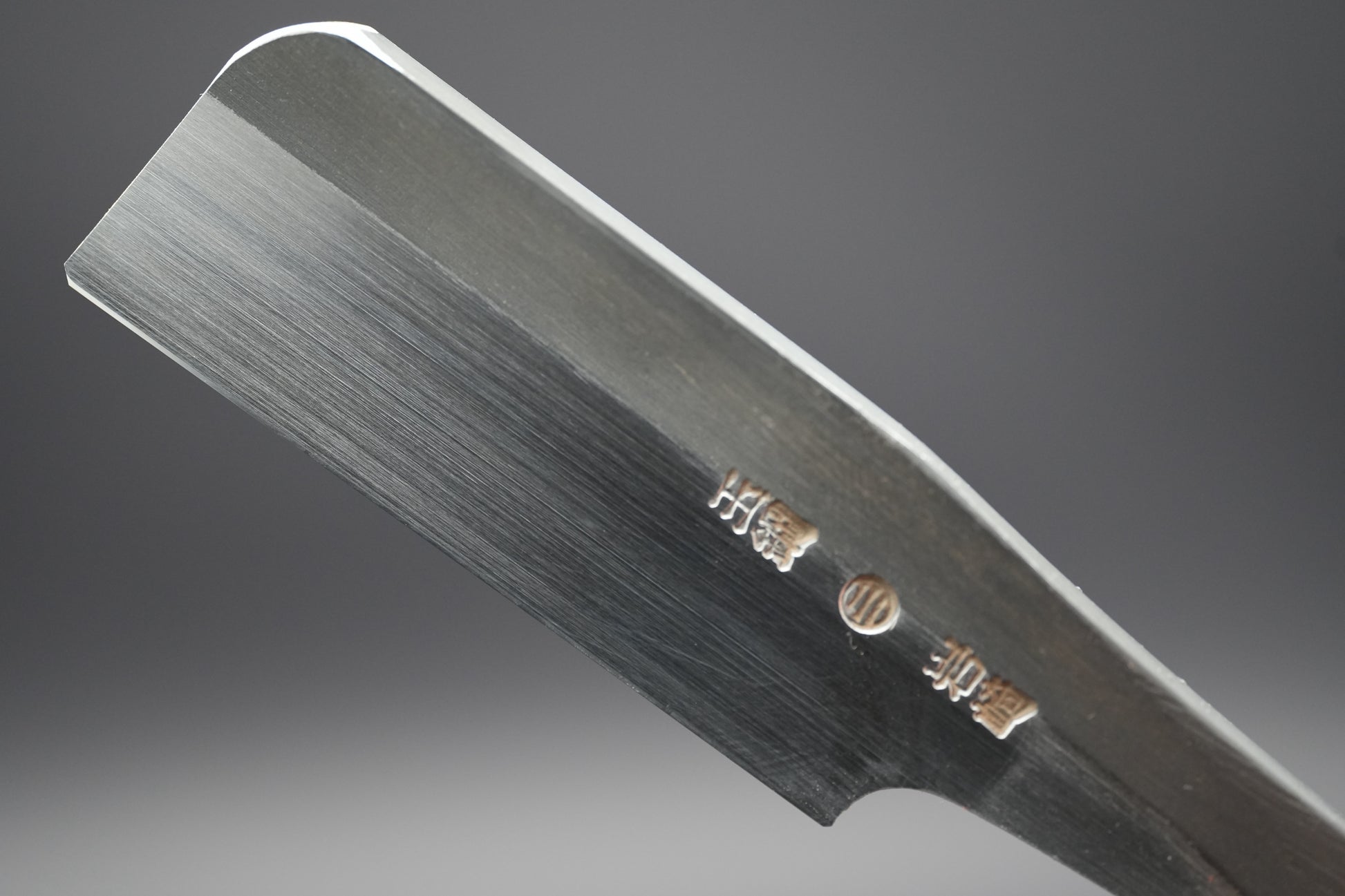 Tamahagane is the traditional steel produced in Japan for centuries. As Japan has no big resources of iron ore, the steel is produced out of iron sand in a several day long process by hand. It was the main source for all Samurai Swords. Mizuochi San still has old stocks of this special steel, he also produces razors with Swedish steel, but this one here is the real deal! He confirmed us that he will rarely produce these.