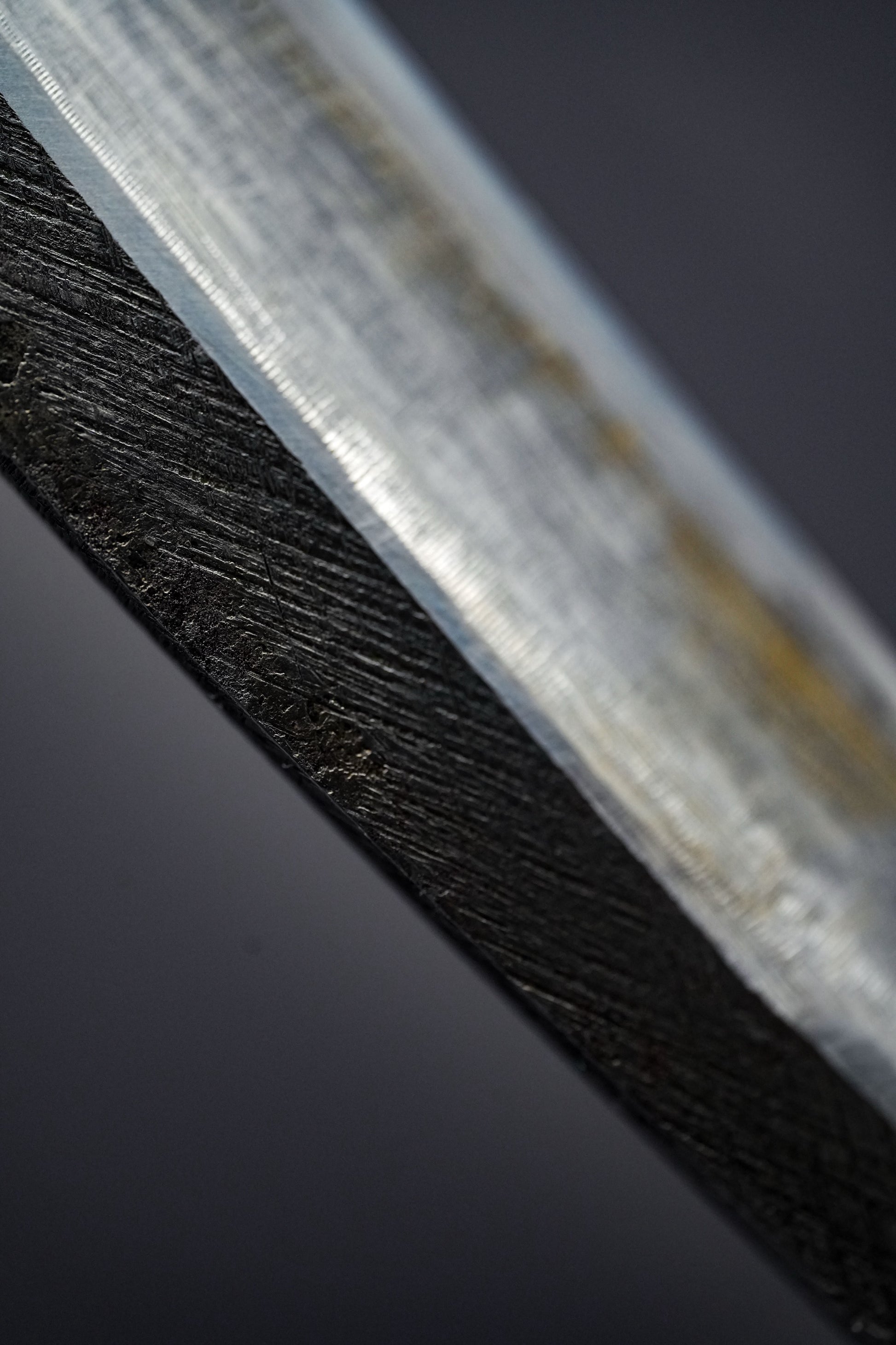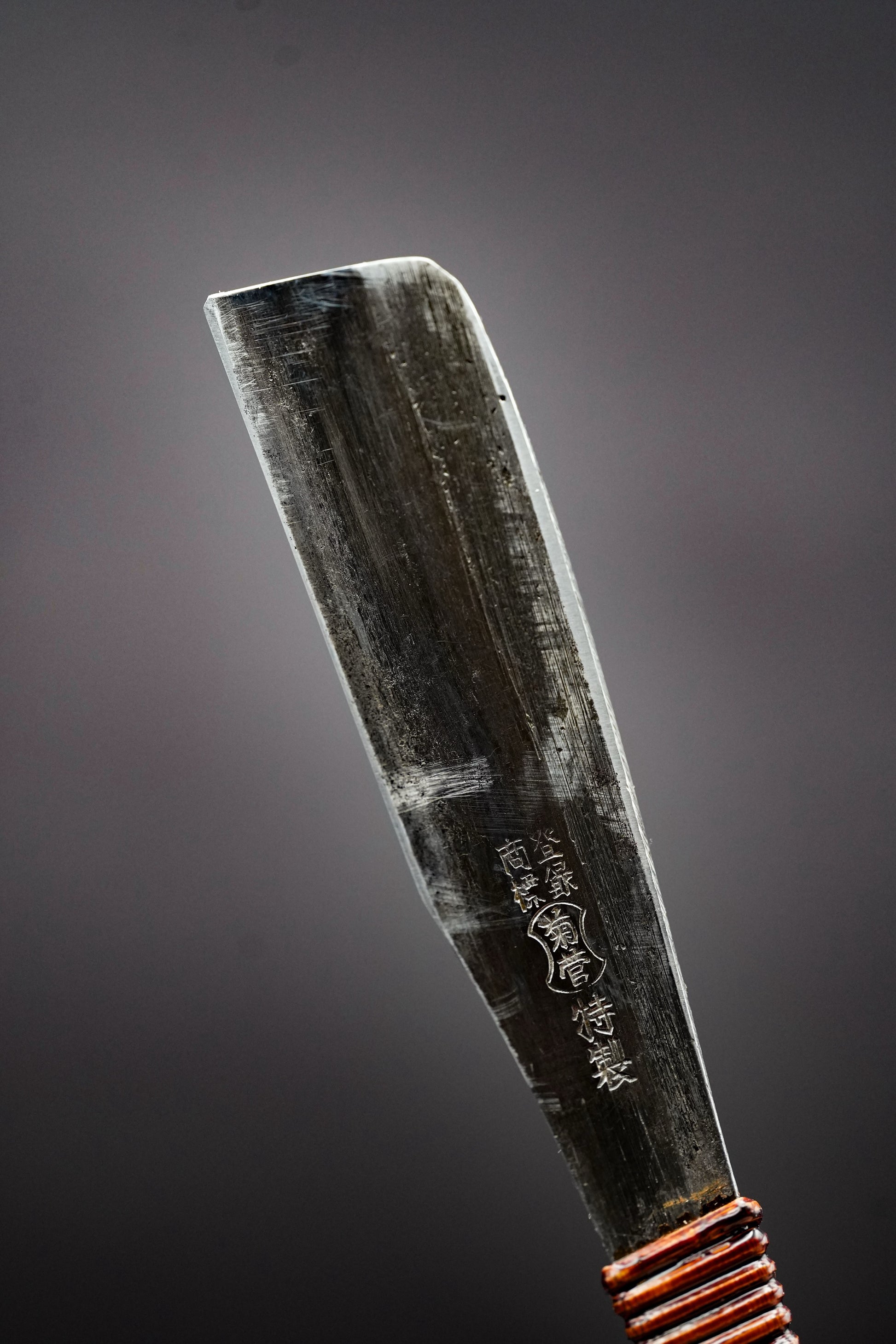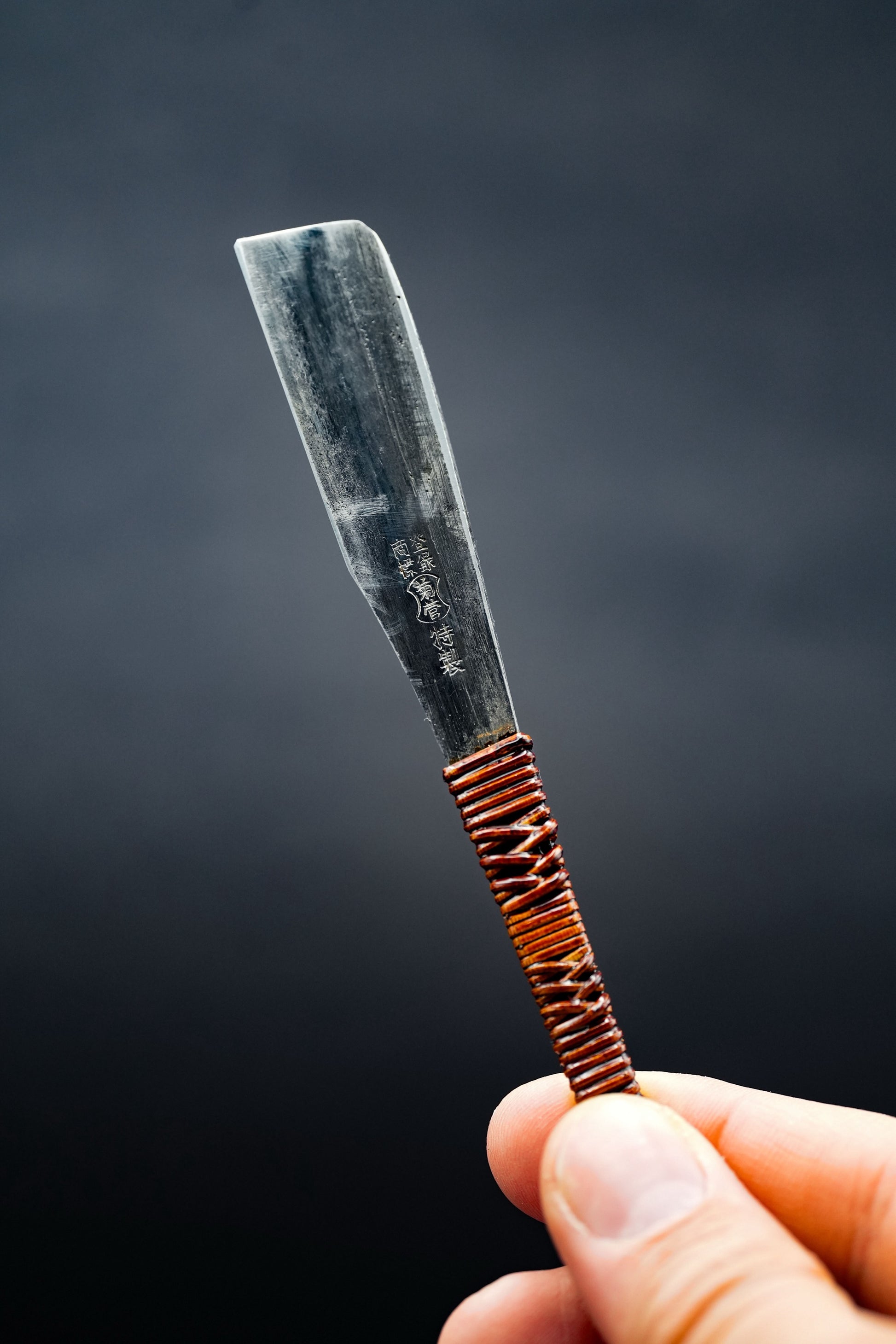 Nous avons retiré l'ancienne poignée, les taches et la rouille. Nous l'avons ensuite bleuie pour éviter qu'elle ne rouille davantage. Nous avons ensuite fixé une poignée en rotin traditionnelle recouverte de laque urushi japonaise naturelle.