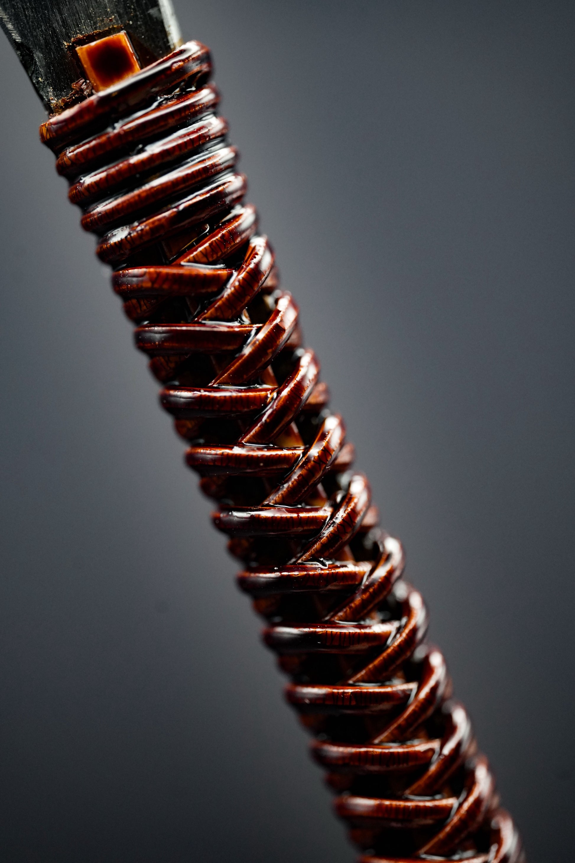 Poignée gainée de rotin japonais et de laque Urushi.
