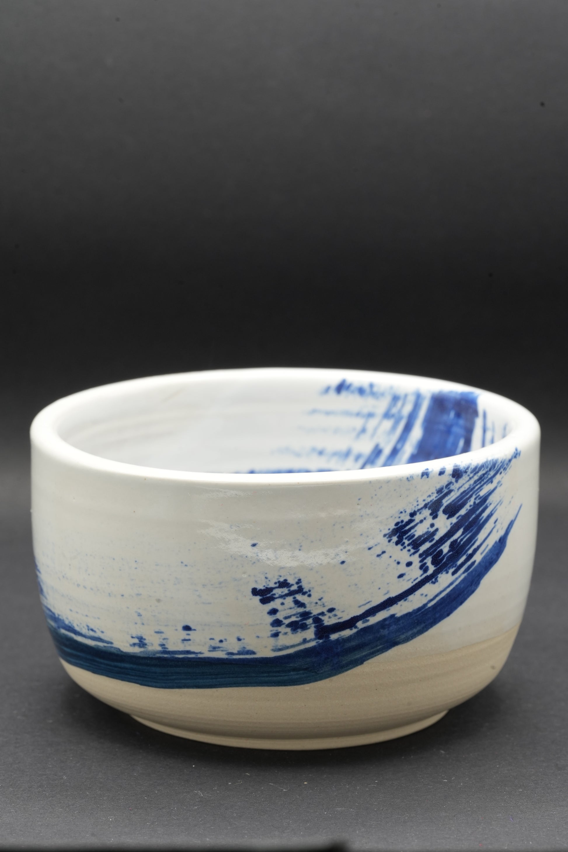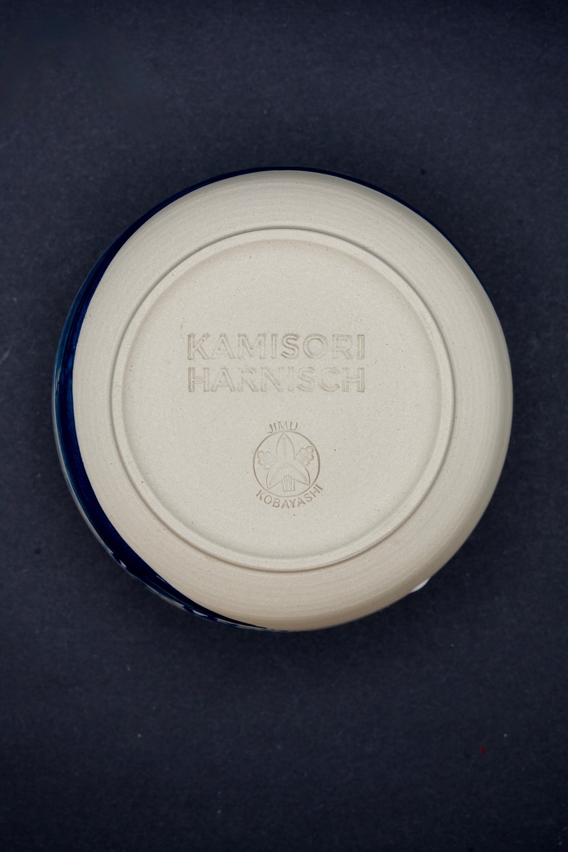 Fruit d'une collaboration avec l'artiste potier Jimu Kobayashi , basé à Düsseldorf, ancré dans la tradition japonaise, ce bol s'inspire de la forme d'un bol à matcha, la tasse à thé traditionnelle japonaise. Il est recouvert d'une glaçure blanche raffinée, rehaussée d'un coup de pinceau bleu appliqué à la main à l'intérieur comme à l'extérieur. La base porte le sceau de Jimu Kobayashi et Kamisori Harnisch , gage d'authenticité. Présentée dans un coffret en bois de paulownia japonais artisanal et enveloppée de soie rouge japonaise , cette pièce incarne l'élégance et le savoir-faire intemporels.