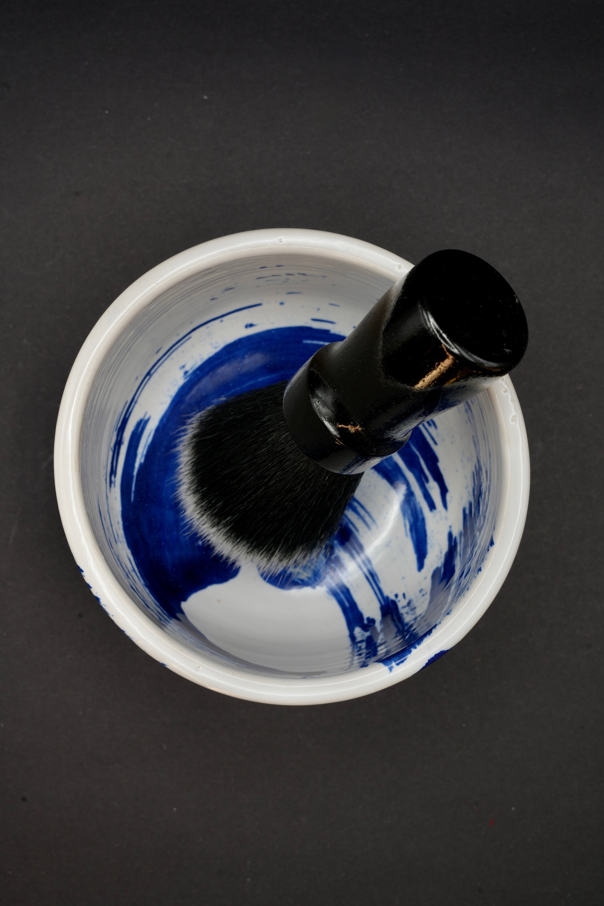 Clean any remaining shaving soap with water and dry it like normal tableware.