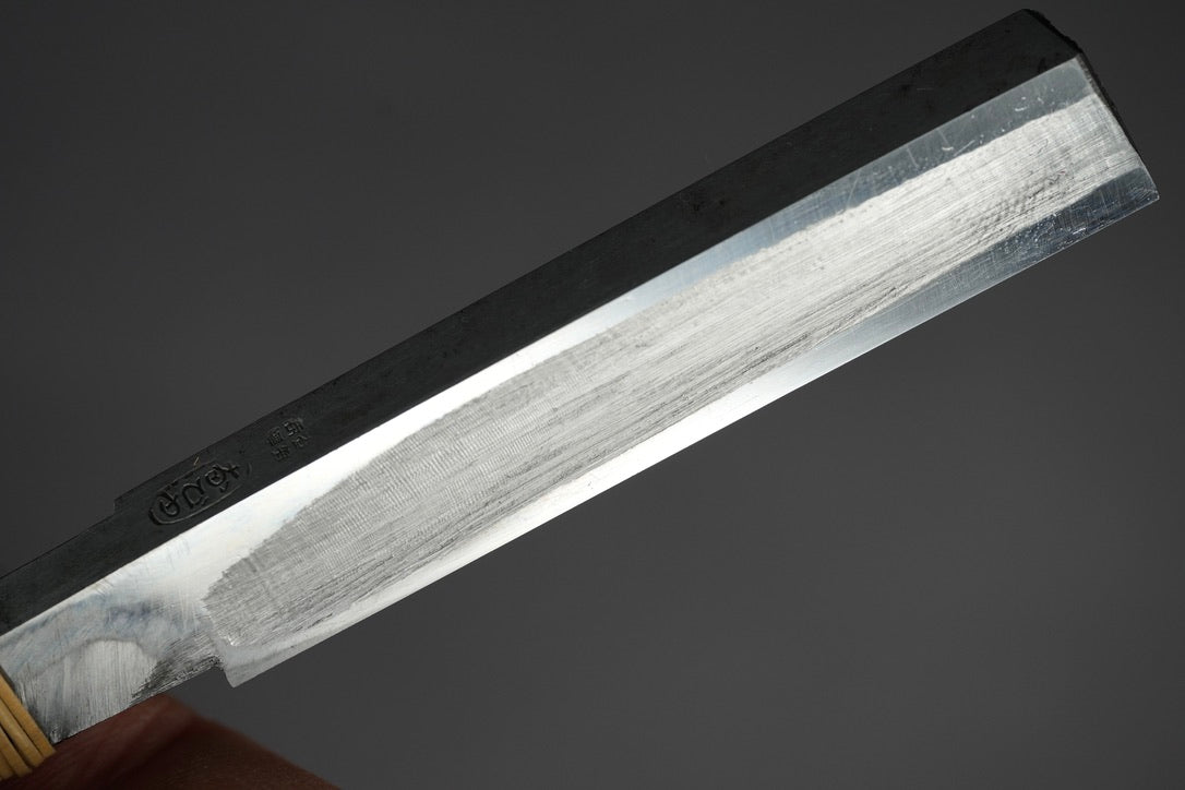 Hiyoshimaru vintage ・日吉丸・Tamaagane・ 玉鋼・ Acier, rasoir droit・Kamisori. Directement importé du Japon et restauré par nos soins avec une qualité et une netteté époustouflantes. Avec boîte en bois Hinoki spécialement conçue.