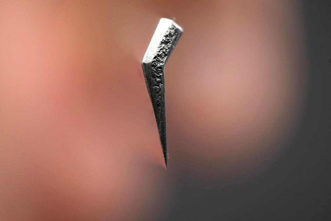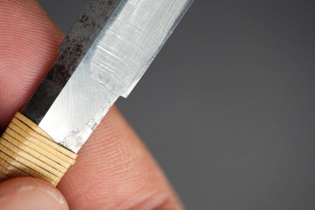 Les aciers à haute teneur en carbone, comme la couche coupante de ce Kamisori, ont une dureté beaucoup plus élevée et garderont leur qualité de rasage lisse bien plus longtemps avant de devoir les affûter à nouveau, surtout cette couche Tamahagane !