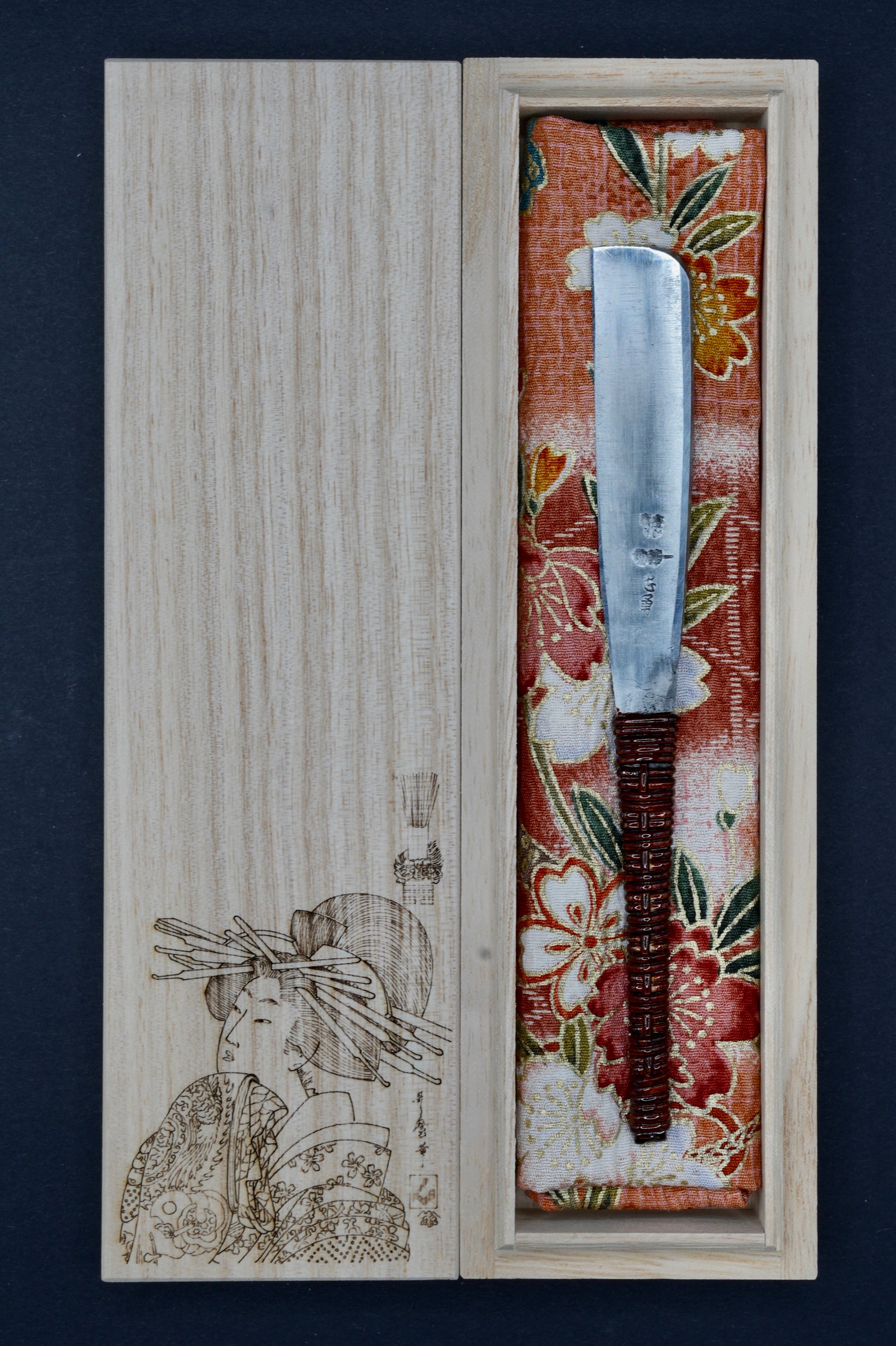 The blade comes wrapped in an up-cycled vintage piece of a Japanese silk Kimono.