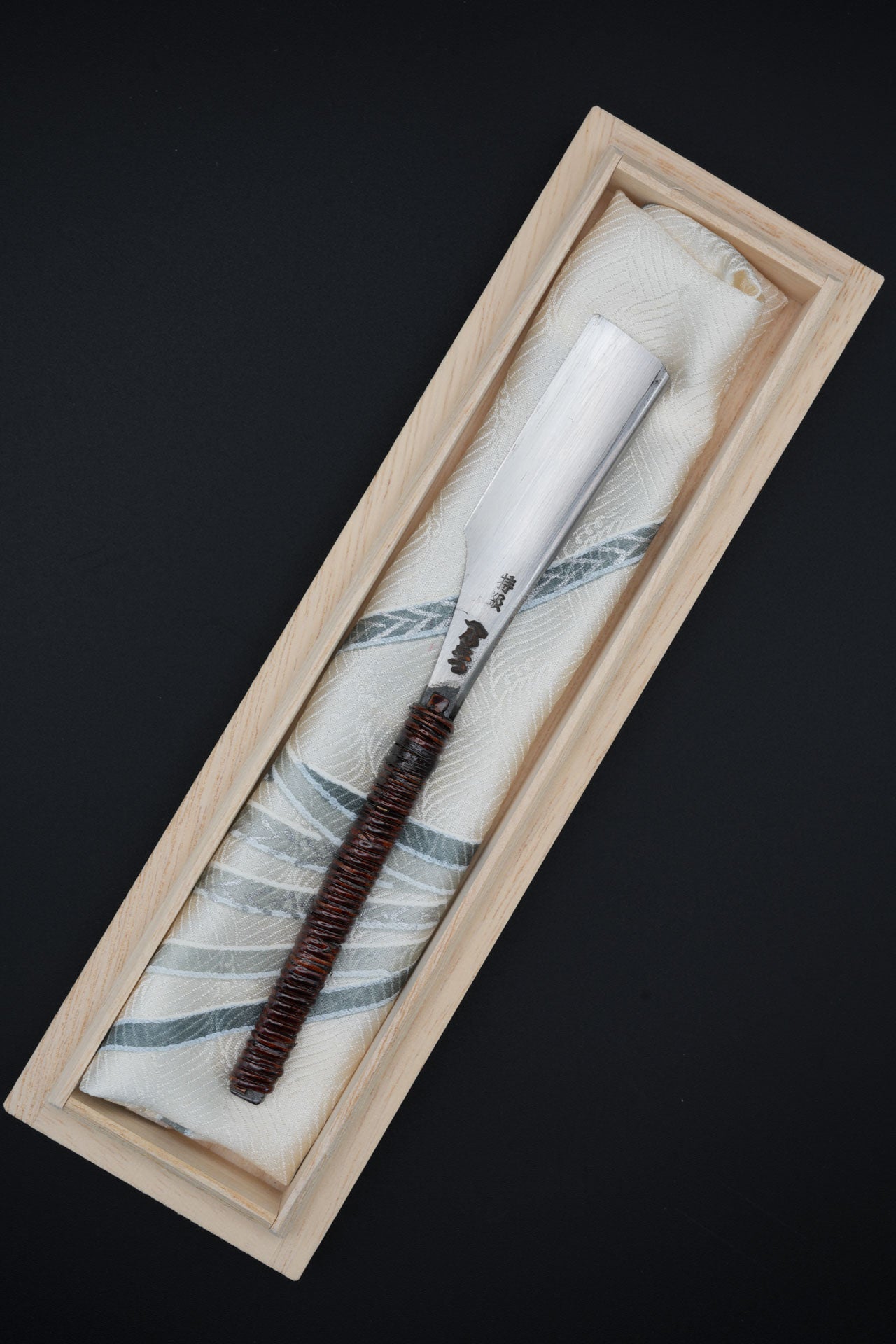 The blade comes wrapped in an up-cycled vintage piece of a Japanese silk Kimono.