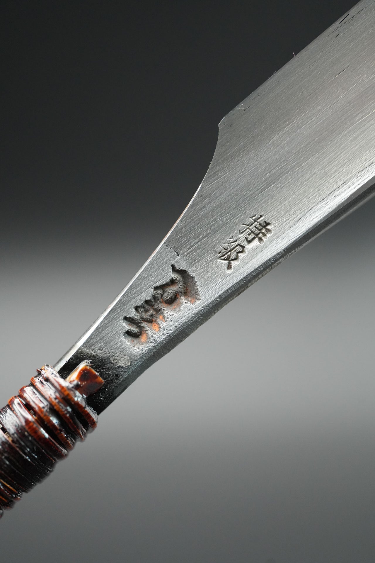 We removed the old handle and old stains and rust from it. Then blued it to prevent it from further rusting. we then attached a traditional rattan handle wrapping with natural japanese urushi lacquer.