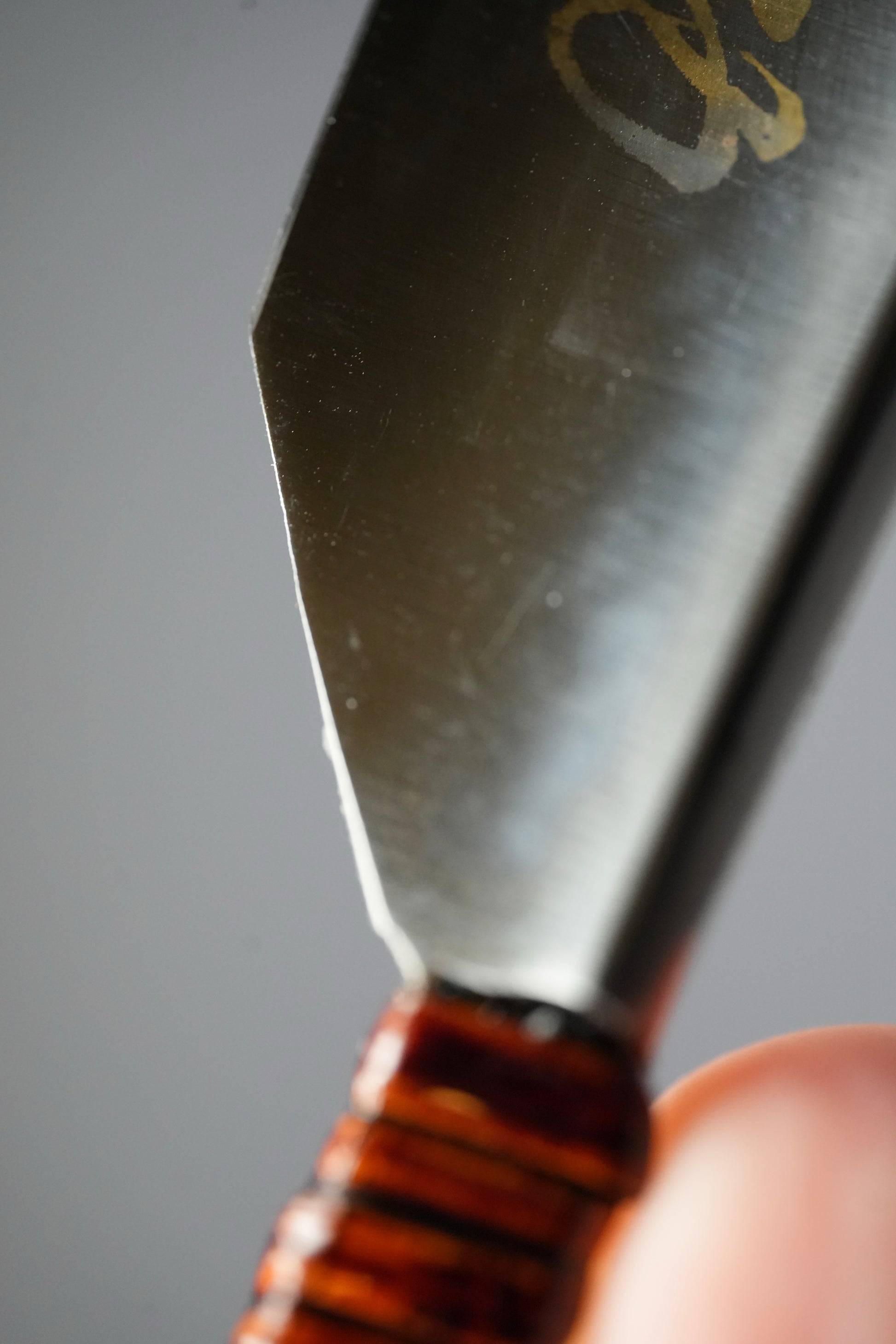 This blade was made of one layer of High Carbon Steel. Older Kamisoris normally were made of two layers of steel, one brittle and hard, the other soft and flexible.