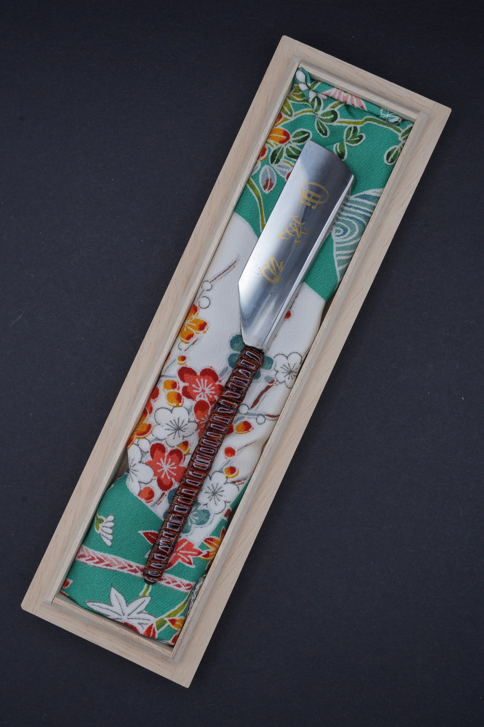 The blade comes wrapped in an up-cycled vintage piece of a Japanese silk Kimono.