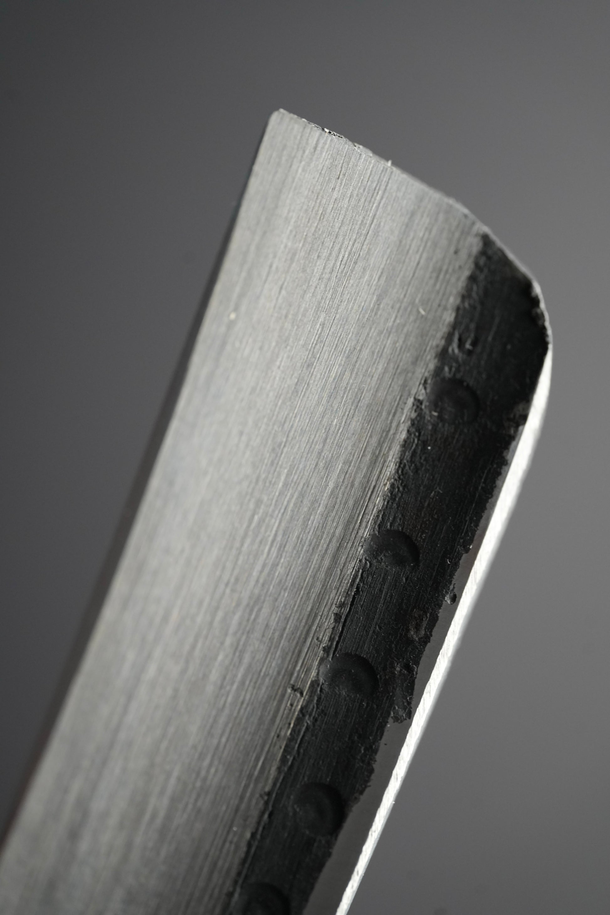 High carbon steels, like the cutting layer of this Kamisori, have a much higher hardness and will keep their smooth shaving quality for much longer before having to sharpen them again.