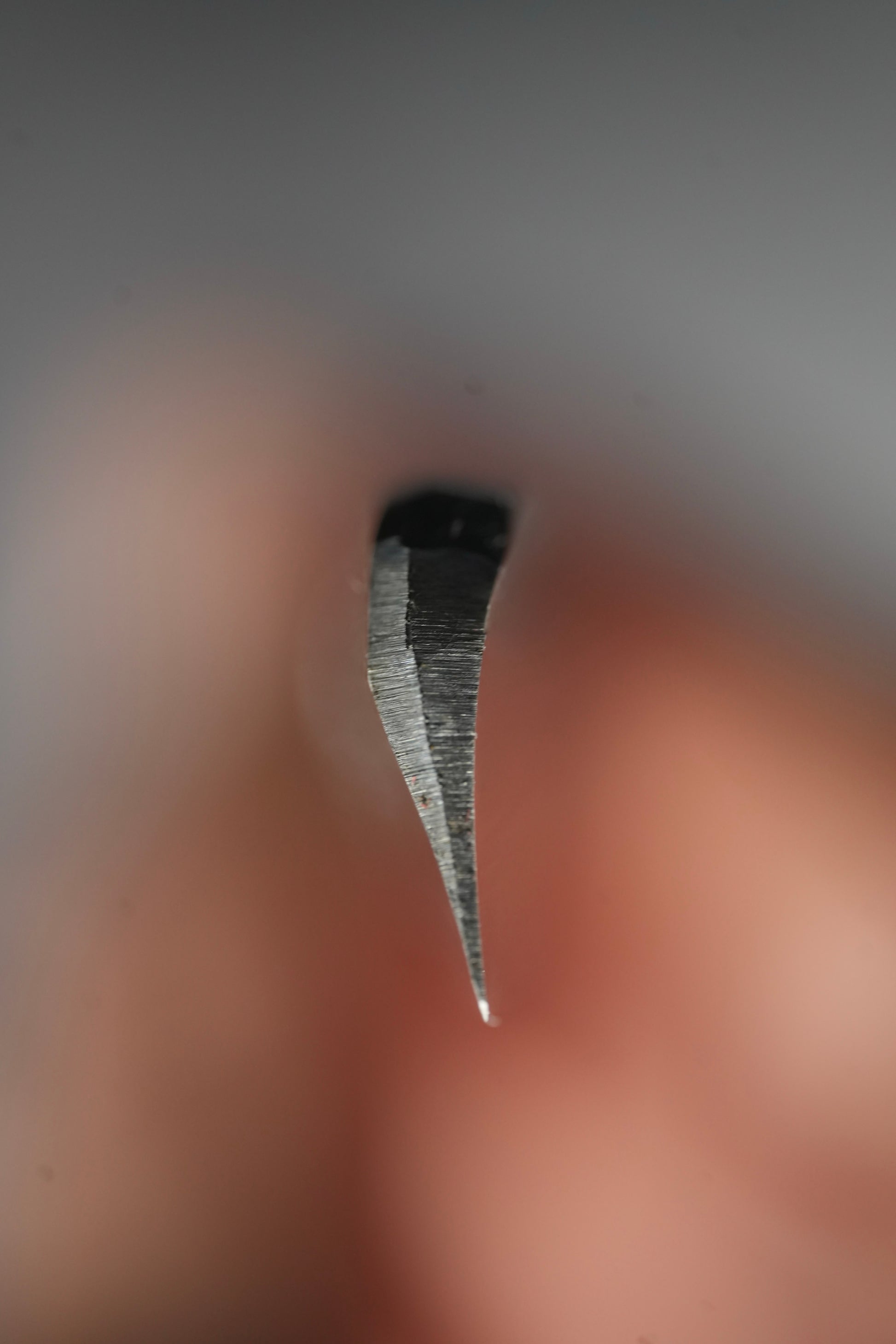 High carbon steels, like the cutting layer of this Kamisori, have a much higher hardness and will keep their smooth shaving quality for much longer before having to sharpen them again.